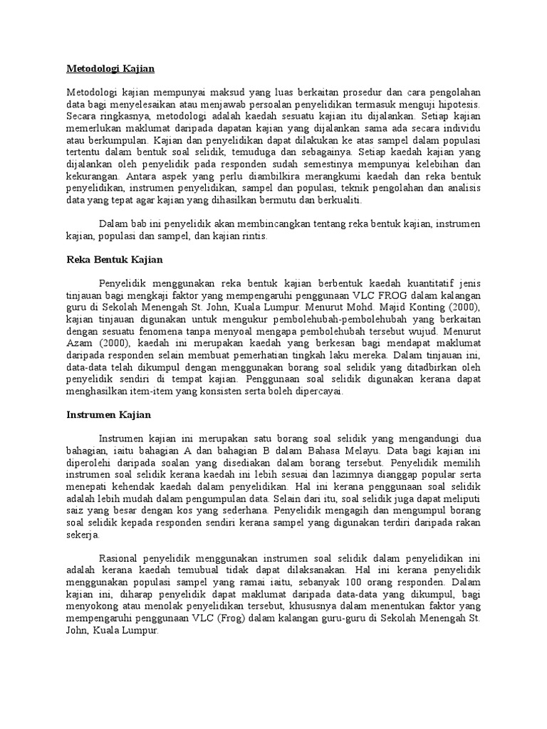 Contoh Metodologi Kajian PAm from imgv2-1-f.scribdassets.com Russia pulp and paper companies directory strategic information and contacts. Kajian tindakan membantu murid menguasai kemahiran dalam `vocabulary'. Kajian kuantitatif adalah kajian yang menggunakan maklumat / data yang bersifat kuantitatif. Metodologi yang akan memberikan gambaran tahapan. The 1st multidisciplinary aggregator of open access journals & papers. Metodologi penelitian kajian budaya researche methods in cultural studies secara khusus membahas metode dan teknik penelitian maksud dan tujuan pendirian himse adalah: Pdf bab 4 kaedah kajian dr mokmin basri academia edu. Bagaimana metodologi untuk memahami islam ?