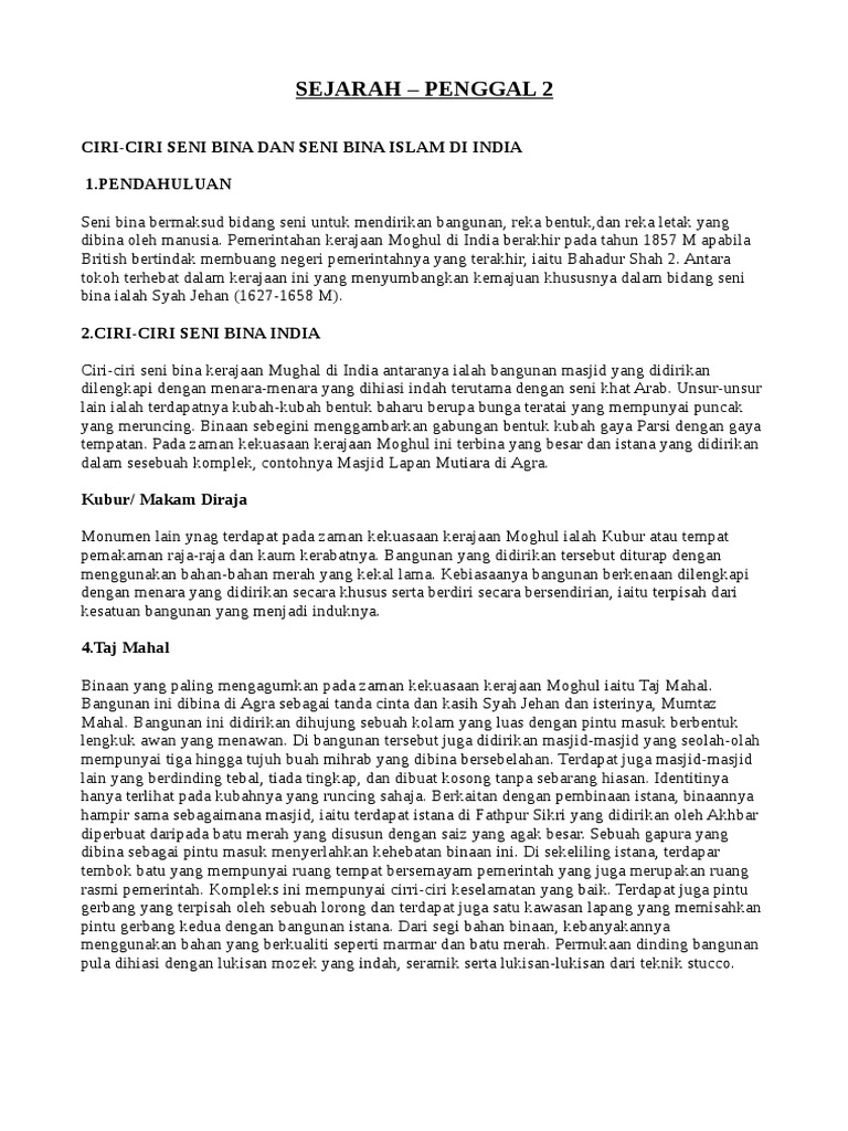 Ciri Ciri Seni Bina Islam / Pemerintahan kerajaan moghul di india berakhir pada tahun 1857 m apabila british bertindak.