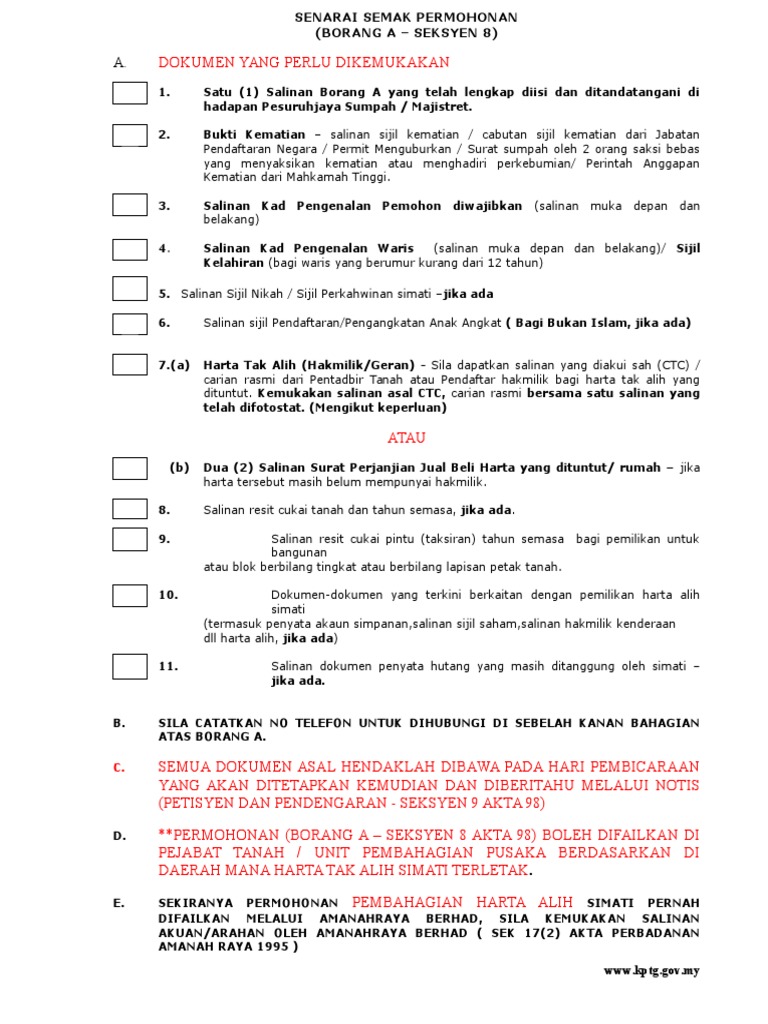 Senarai Semak Borang A Harta Pusaka : Pengurusan Harta Pusaka Dengan Wasiat Dan Tanpa Wasiat Jom Urus Duit / Seterusnya, sila klik pada pautan daftar akaun baru untuk membuat pendaftaran sebagai pengguna sistem jkptg online.. Senarai semak borang p harta pusaka. Perintah yang dikeluarkan disebabkan oleh permohonan dibuat melalui borang p. Borang permohonan pengecualian / pengurangan fi tunggakan ( lampiran b) (pm/gm/hsm) Senarai semak borang a harta pusaka senarai semak permohonan harta pusaka pesuruhjaya sumpah gelang patah johor facebook doc senarai semak permohonan borang a seksyen 8 zam norbit academia edu Pembicaraan boleh diadakan di balai raya/ balai penghulu dewan orang ramai yang berhampiran dengan tanah peninggalan simati;